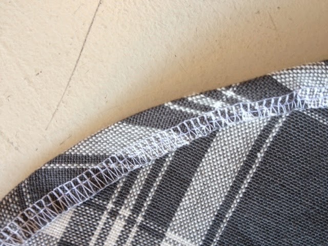 -När detta är avklarat ska du vika in kanterna i böjen där fram och sy en söm, på maskin eller för hand.
